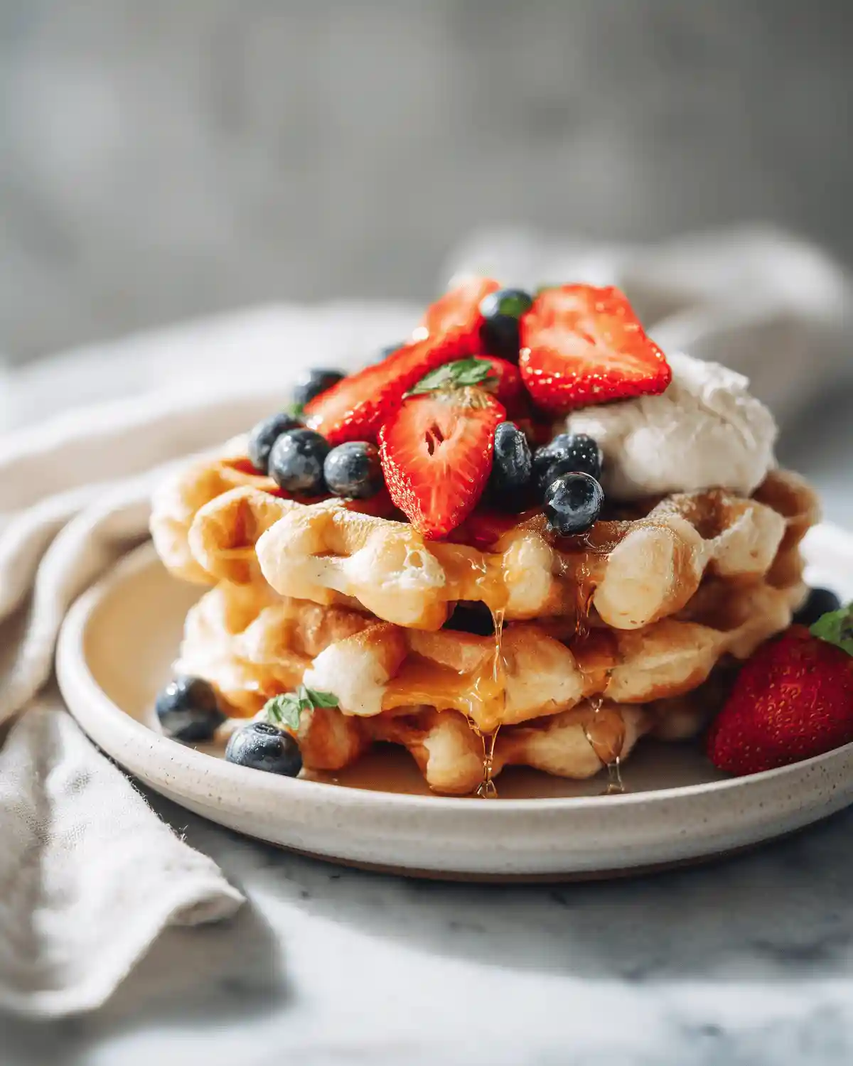 Quand il me reste des bananes trop mûres, je les écrase et je les ajoute à la pâte. Ça donne des gaufres naturellement sucrées, moelleuses et un peu plus légères. Parfait pour un petit-déjeuner rapide.